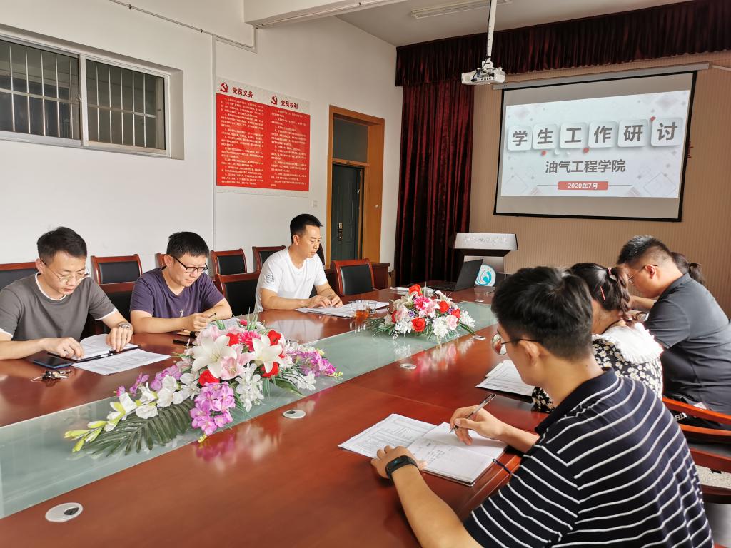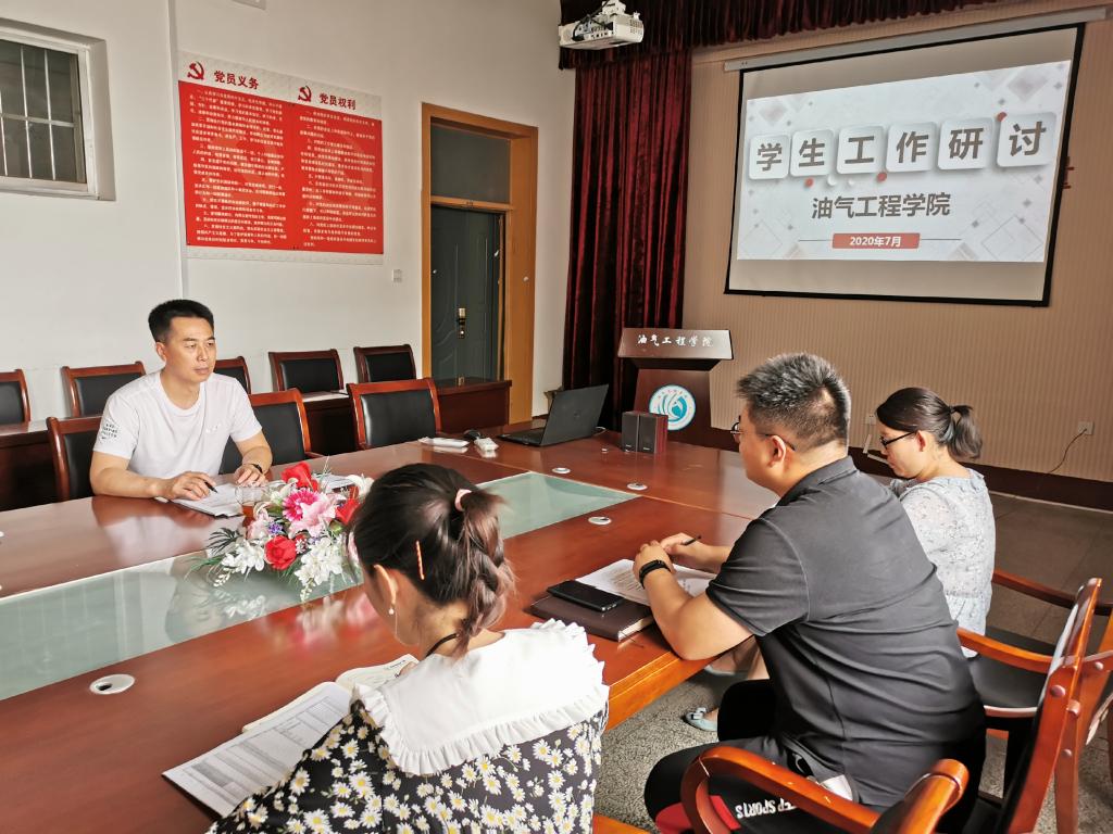 为平稳有序地开展后疫情时期的学生工作,2020年7月17日上午,油气工程学院学生工作团队在西配楼4004召开了“学生工作研讨交流会”,党总支书记章志军、学生工作办公室主任李聪聪、辅导员伍佳慧、王成、李文强及兼职辅导员吴晓、董龙飞参加了会议。