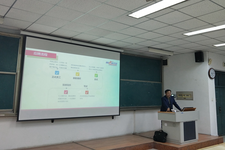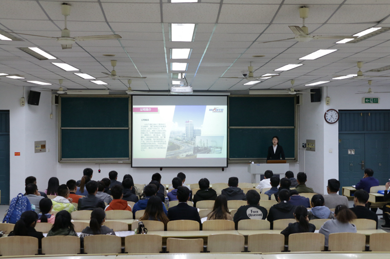 尚海涛首先感谢学校多年来对企业的支持,然后从企业用人全局介绍了公司的情况及人才需求情况,随后刘洪涛向大家介绍了万通石化集团的发展情况及企业岗位需求。