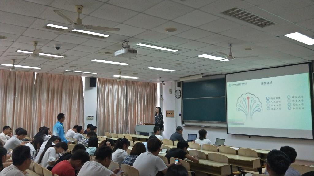 会议由人力资源经理马莹莹主持,马经理就公司的规章制度、员工福利、薪酬体系、企业文化以及现有产业结构、组织构架等方面向同学们做了详细的介绍,并表示京博物流文化推崇“吃苦、敬业、节约、亮剑”的企业精神,期望我校学子能够加入京博。