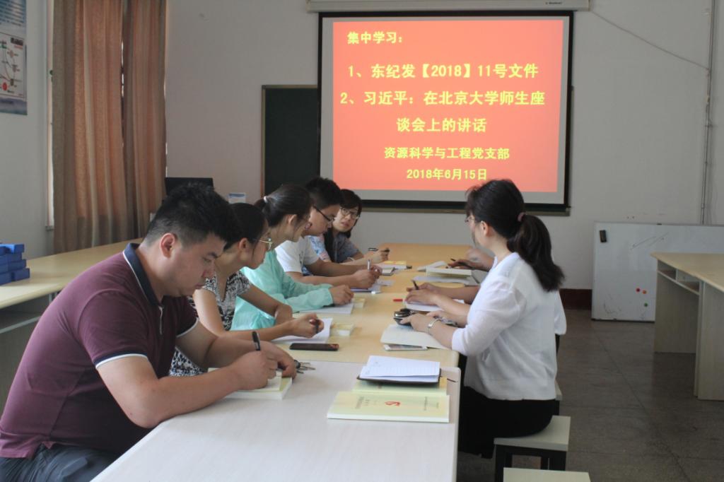 2018年6月15日,资源科学与工程党支部在油气工程学院2005组织召开支部党员大会,全体党员参加会议。支部党员大会组织全体党员学习了中共东营市纪委文件《中共东营市纪委关于进一步落实中央八项规定精神,不断加强作风建设的通知》,并结合通报的5月份全市查处违反中央八项规定精神问题情况以及典型案例,加强警示教育。此外,会议还组织全体党员学习了“习近平:在北京大学师生座谈会上的讲话”,鼓励全体党员要时刻谨记:“中国梦是历史的、现实的,也是未来的;是我们这一代的,更是青年一代的。中华民族伟大复兴的中国梦终将在一代代青年的接力奋斗中变为现实。要乘新时代春风,在祖国的万里长空放飞青春梦想,以社会主义建设者和接班人的使命担当,为全面建成小康社会、全面建设社会主义现代化强国而努力奋斗,让中华民族伟大复兴在我们的奋斗中梦想成真!”