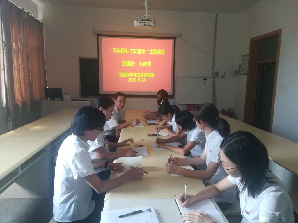 按照上级要求,9月24日,资源科学与工程党支部围绕“不忘初心、牢记使命——迎国庆、心向党”开展了集中学习研讨活动。支部全体党员参加。