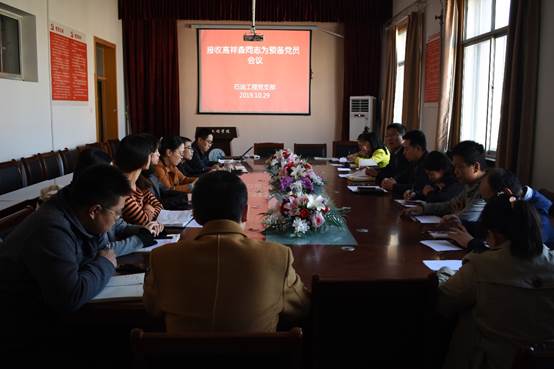 10月29日,石油工程党支部在西配楼4004会议室举行了预备党员接收会议,会议由油气党总支组织委员代晓东同志主持。本次会议严格按照组织程序,经过支部委员会对发展对象进行严格审查合格、报上级党委预审同意进行的。支部17名正式党员全部出席了本次会议。