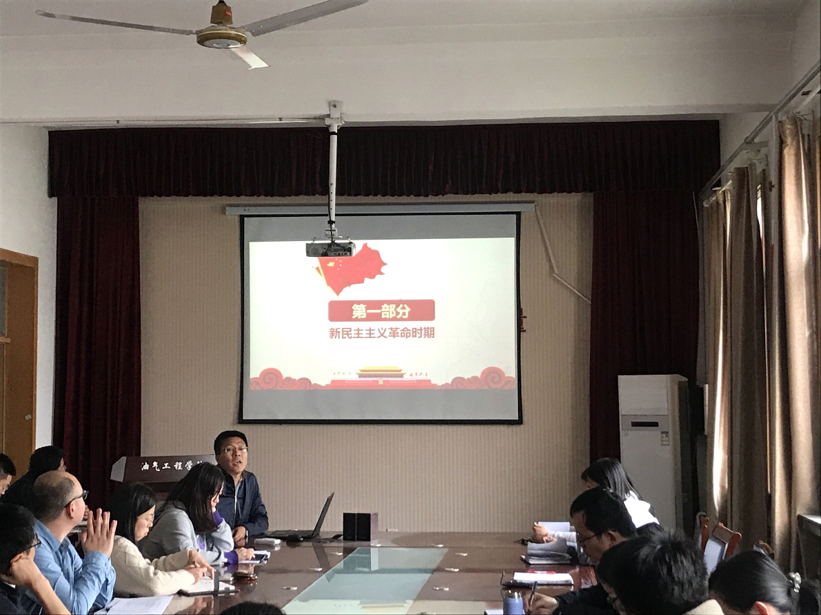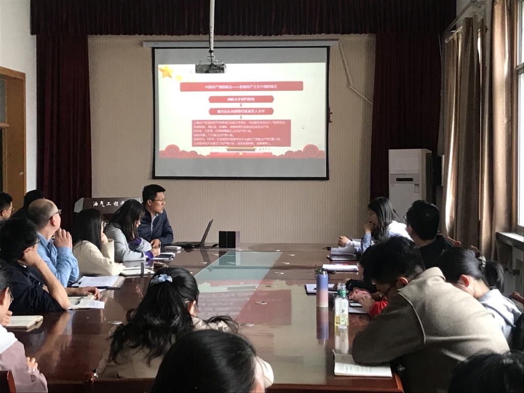 为了庆祝建党100周年,抓好党史学习教育,4月20日下午在学院会议室油气工程学院党总支书记代晓东以《中国共产党的光辉历史》为题为全体党员上了一堂主题鲜明、内容丰富的党课。
