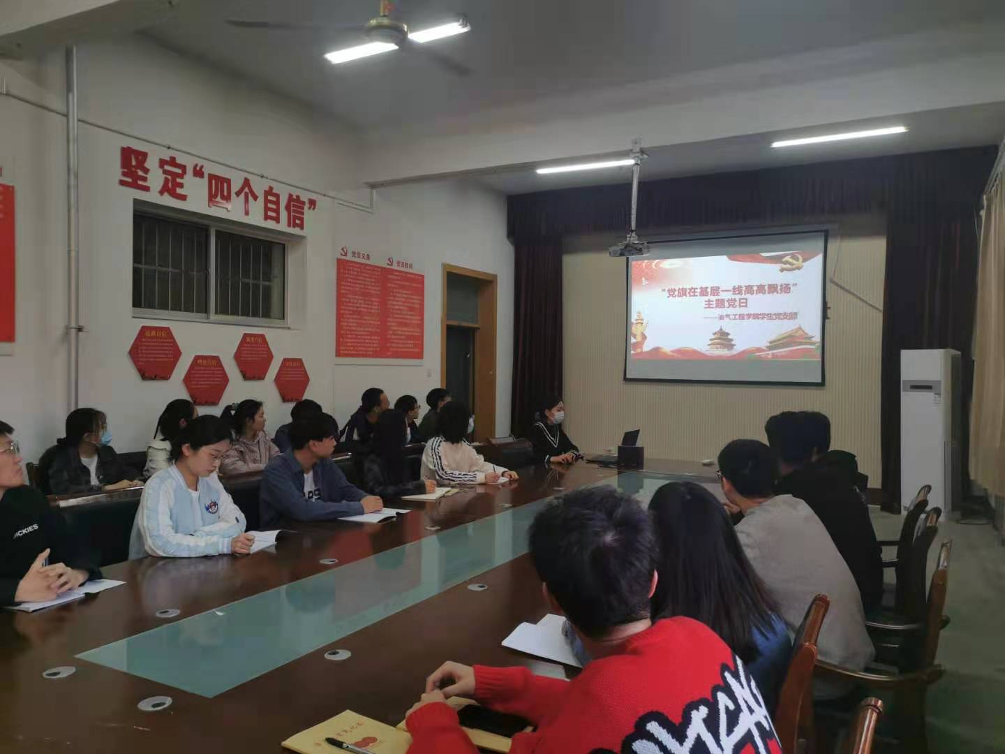 为了深入推进党史学习教育,激励动员学生党员不忘初心、牢记使命,推动各项任务在基层一线落到实处,群众难题在基层一线解决,党员作用在基层一线发挥。4月26日,油气工程学院学生党支部全体成员,于西配楼4004开展“党旗在基层一线高高飘扬”主题党日活动。