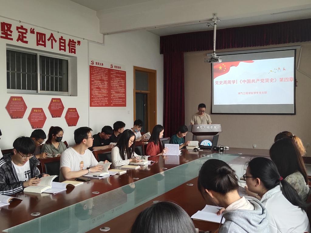5月19日,油气工程学院学生党支部在西配楼4004成功举办党史周周学,参与本次学习的有油气工程学院全体学生党员。
