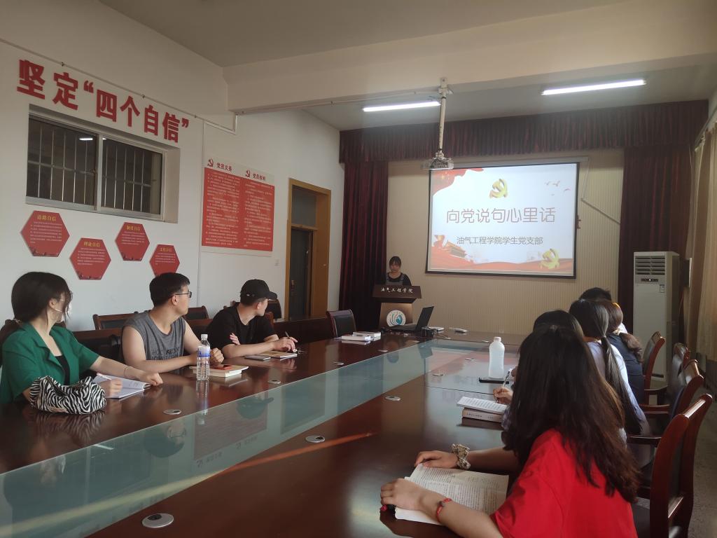 为了坚定党员“感党恩、听党话、跟党走”信念,激励党员不忘初心、牢记使命的责任和担当精神。6月24日,油气工程学院学生党支部于西配楼4004会议室,开展“向党说句心里话”主题党日活动。