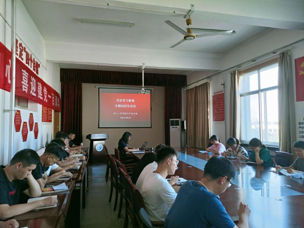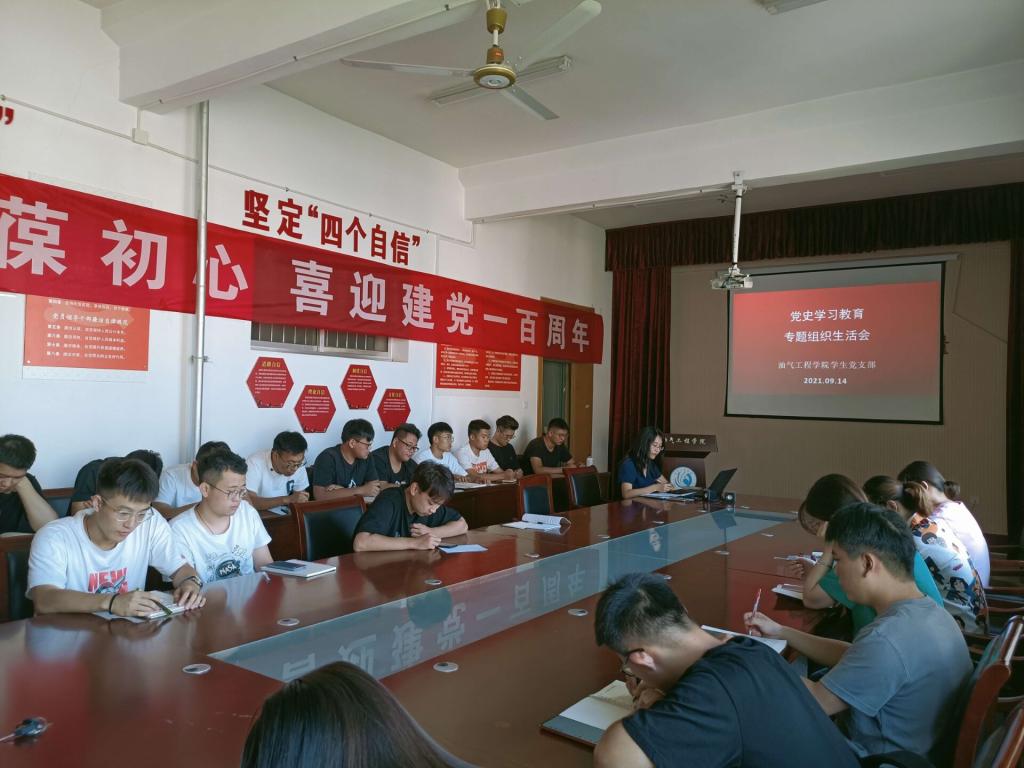 9月14日下午,油气工程学院学生党支部组织全体成员在西配楼4004会议室开展党史学习教育专题组织生活会。学生党支部副书记张樱巾主持此次专题组织生活会。