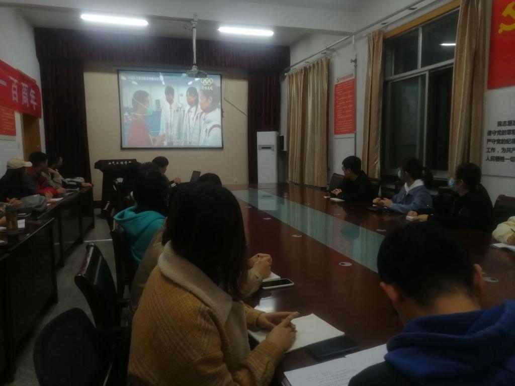 10月26号晚上,油气工程学院学生党支部组织全体成员在西配楼4004会议室集中观看灯塔大课堂第二十四课“巅峰荣耀--齐鲁奥运健儿风采”。