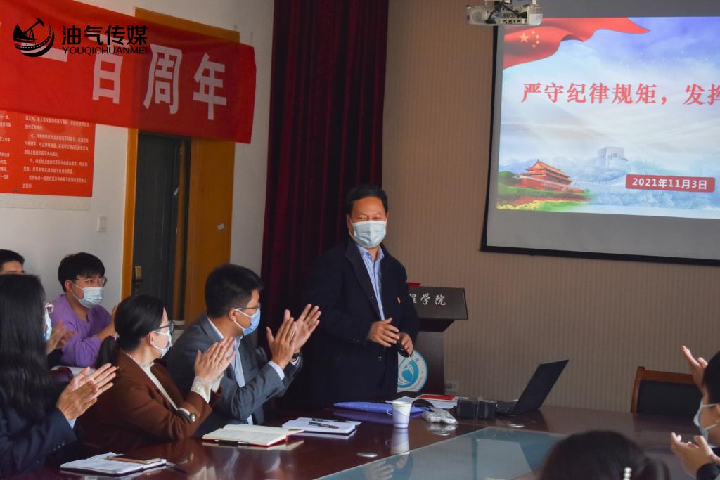 为切实加强纪律建设,开展好发展对象培养教育,推动学校党风建设,在广大师生党员中营造出严守纪律,发挥先锋作用的风气。11月3日,学校党委副书记、副院长孟昭亮以《严守纪律规矩,发挥先锋作用》为主题,为油气工程学院师生党员讲授专题党课。党课由油气工程学院学生党支部书记张樱巾主持。