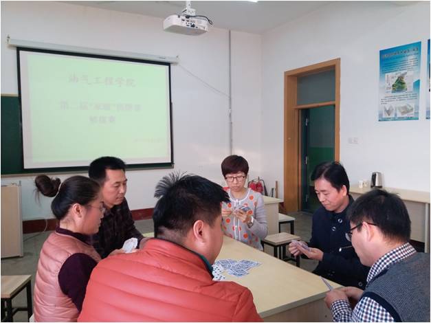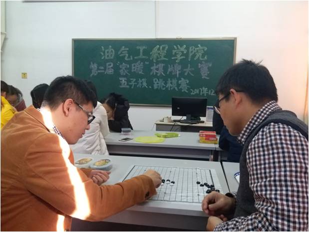 12月8日下午,油气工程学院第二届“家暖”棋牌比赛在石大校区西配楼2005、2007室举行。我院执行院长梁敬升、党总支书记章志军、副院长代晓东、各专业课教师及辅导员参加活动。