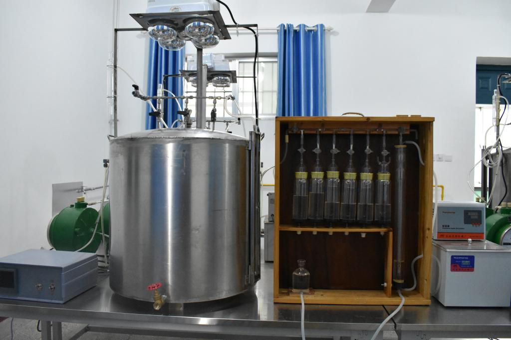 YK-2型小呼吸蒸发损耗实验装置是面向油气储运专业,与《油库设计》专业课程相配套的专业实验,主要由模型油罐、奥氏气体分析仪、水浴、太阳灯、温度巡检仪、压差计、气体流量计等组成。通过模拟固定拱顶油罐的小呼吸蒸发损耗过程,实验测量整个油罐温度场,了解油罐内部的温度分布规律,以及光照对温度场的影响;通过测量油罐内部不同点的浓度,了解油罐的浓度分布;通过计量呼出的流量来计算小呼吸蒸发损耗的大小。可开设以下3个实验项目: