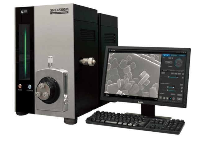 台式扫描电镜具有体积小,操作简便,快速抽真空、大景深、成像速度快等特点,最大放大倍数可高达10 0000 倍以上,可弥补光学显微镜与传统大型扫描电镜之间的空白区域,可广泛应用于地质科学、材料科学、纳米颗粒、生物医学、食品药品等诸多领域。该设备在石油行业主要应用于精确表征颗粒表面结构、孔隙结构及分布、岩石颗粒大小及矿物晶体类型等。能够准确计算储集空间的面孔率,识别岩矿等,可为微观储层特征的深入研究提供实验平台。