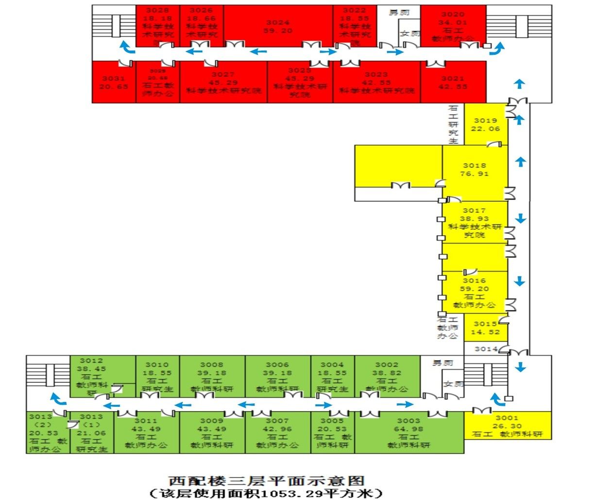 西配楼三楼疏散通道示意图: