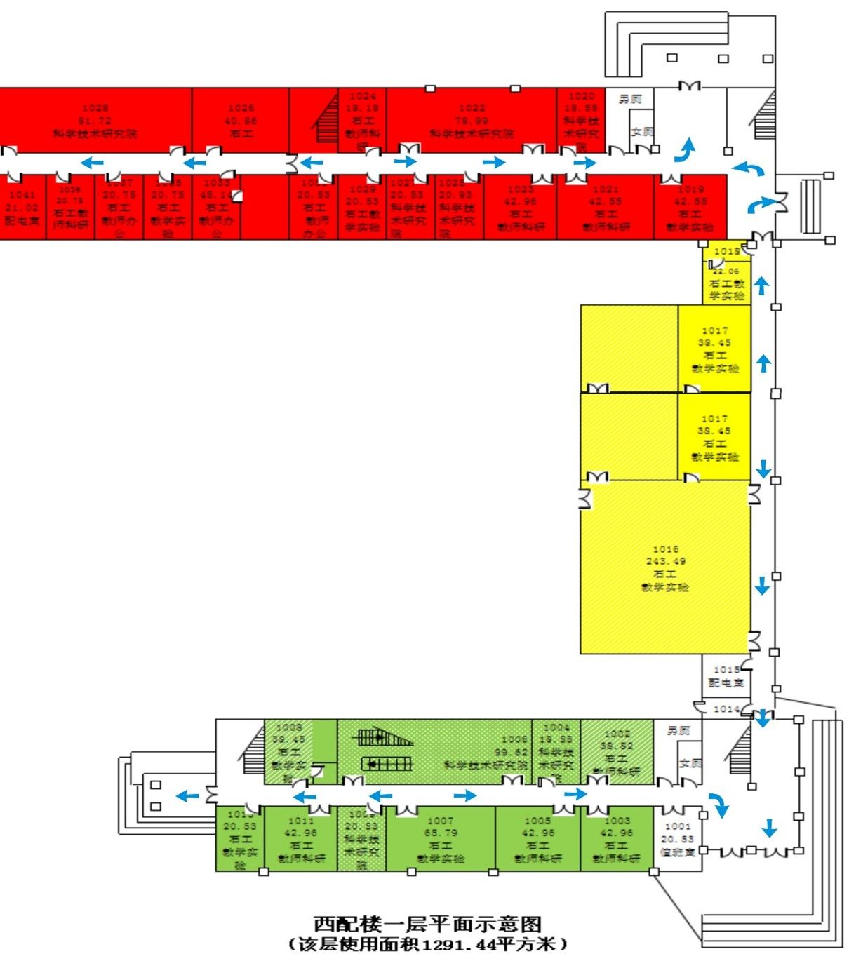 西配楼一楼疏散通道示意图: