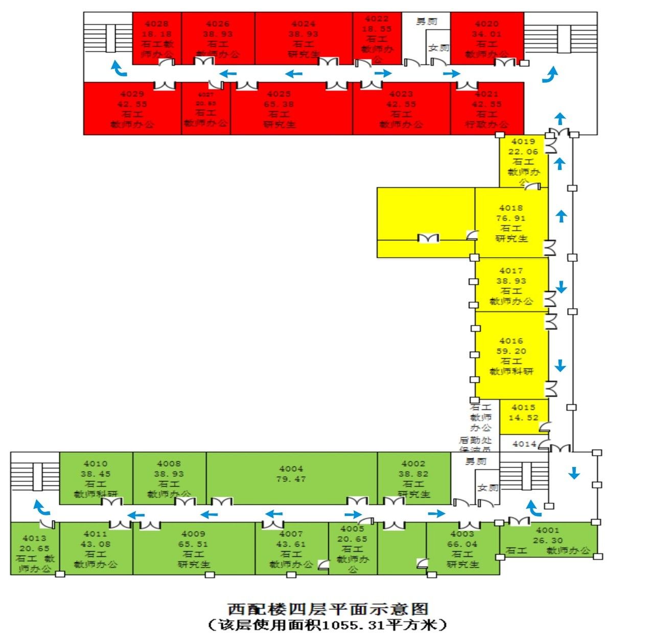 西配楼四楼疏散通道示意图:
