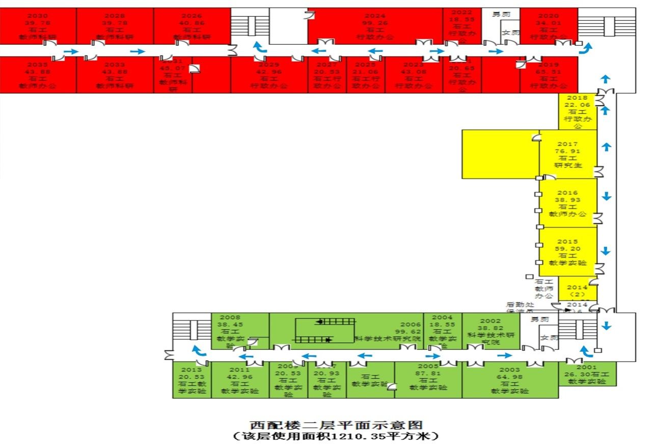 西配楼二楼疏散通道示意图: