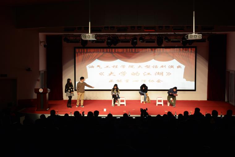 12月15日晚,由我院正能量心理协会举办的大型话剧《大学的江湖》在石大校区100号学术报告厅欢乐上演。学院执行院长吴明银、学生工作处副处长张超、校团委薛敏老师、教育与艺术学院学工办主任张双双、机械与控制工程学院辅导员王亚萍以及我院全体辅导员和全校近五百名学生一同观看了演出。