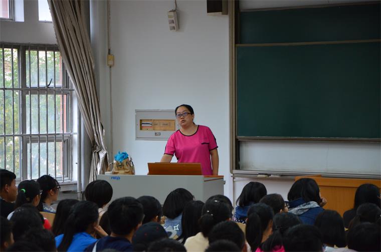 党总支书记殷丽为15级新生讲解大学第一课,殷书记向新生强调了学校的各项管理规定,要求同学们严格遵守规章制度,规范自己的言行,完成角色转换;并鼓励新生要全面发展自己,度过精彩的大学生活。