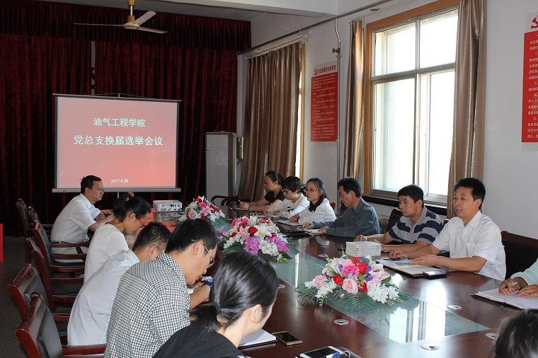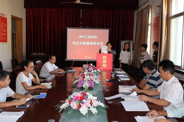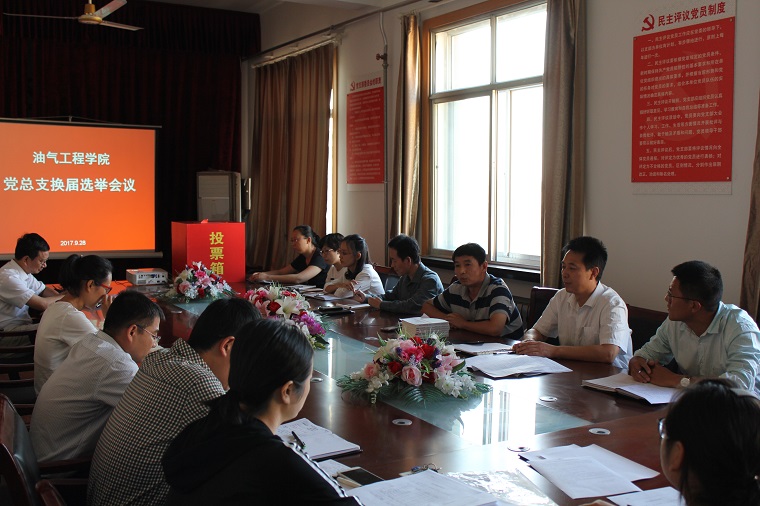 根据学校党委《关于中国石油大学胜利学院基层党组织换届选举工作的通知》精神,油气工程学院党总支于9月28日召开党员大会顺利完成总支委员会换届选举工作。会议由党总支书记章志军同志主持,组织宣传处副处长沙斌同志列席会议。