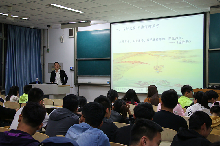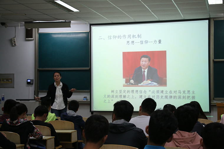 尹主任的课程深入浅出,具有哲学意味又不失现实意义,分别从传统文化中的理想信念、理想信念对人的影响和动力、理想信念与社会主义模式相结合、理想信念在马克思主义理论中的应用、信仰的伟大力量等方面全面阐述了信仰的重要意义,强调马克思主义哲学和社会主义信仰的科学性,此间,尹主任还穿插了毛泽东等伟人少年时的经历,使同学们更深入地感受到了信仰的伟大及坚定理想信念的重要性。