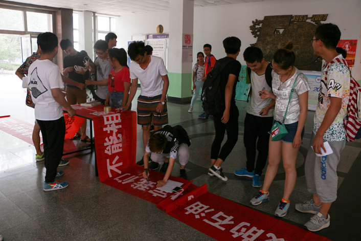 当天恰逢第二十九个世界无烟日,本次无烟日宣传活动共包括横幅签字、展板宣传等项目。学生会以此次世界无烟日为契机,让同学们进一步意识到吸烟的危害,自觉地拒绝吸烟。签字完成后,工作人员将横幅粘贴在四教大厅的墙上,以此激励同学们创建无烟校园。