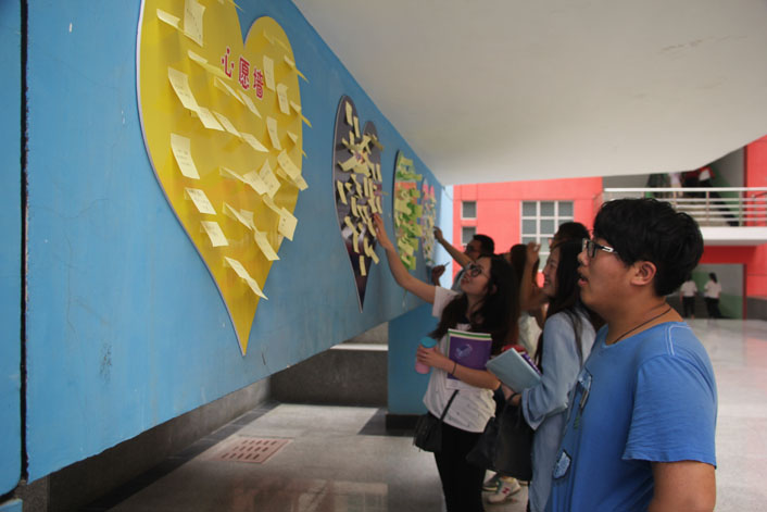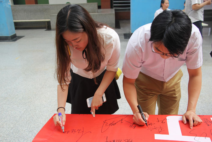 活动由“5.25与心灵相约,与健康同行”横幅签名、“心灵胶囊”心愿坛、“传递正能量—解开千千结”三部分组成。活动开始后,来自各教学院(系)的同学们纷纷拿起马克笔在横幅上签下自己的名字,表示愿意用“我爱我”的誓言参与此次活动。随后在工作人员的引导下将自己的心愿放进心愿坛内,缤纷的心愿坛内寄托了同学的希望,工作人员整理后将其贴在许愿墙上。在活动现场的心理知识区,悬挂了写有心理小知识、正能量话语的明信片,同学们在参加活动的同时,丰富了自己的心理知识,解开了心结。