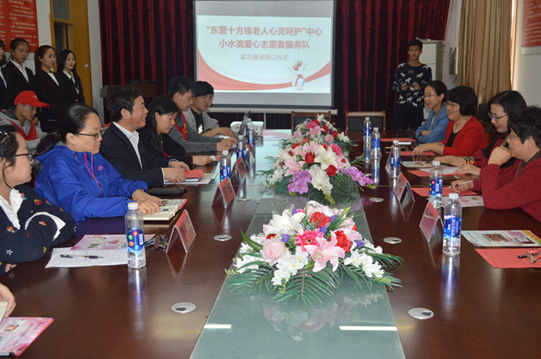 4月20日下午,油气工程学院小水滴爱心志愿者服务队与“东营十方缘老人心灵呵护中心”签订公益项目实习基地协议并授牌。
