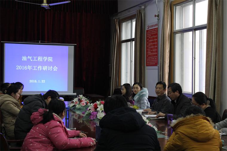 1月22日上午,油气工程学院2016年工作研讨会在学院会议室召开。会议由油气工程学院院长吴明银主持,胜利学院党委书记孙学斋及油气工程学院部分教职工代表参加会议。