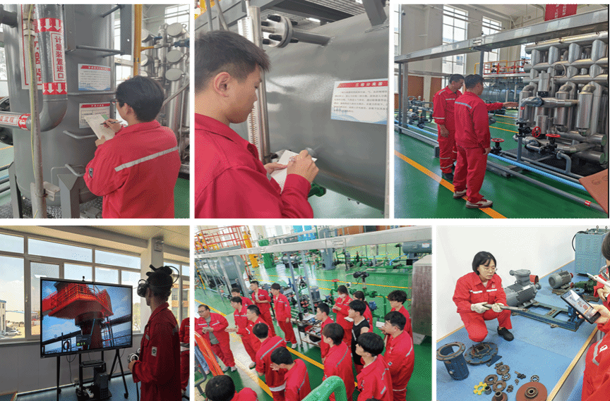 2022级海洋油气工程专业于6月28日至7月10日在山东海盛海洋工程集团胜利海油实训基地、中石化胜利石油工程公司培训中心、胜利油田培训中心、东辛采油厂和纯梁采油厂等多个实习基地开展了首次专业实习。在7名党员教师带领下,本次实习作为全国高校“双带头人”教师党支部书记“强国行”专项行动的重要实践,以“蓝色海油、红色先锋、能源报国、能源强国”为指导思想,通过强化思政引领,注重协同育人,实现了海洋油气工程理论与工艺实践的深度融合,增强了学生对海洋油气工程的认识,培养了学生的社会责任感,提升了学生服务海洋能源强国建设的使命感。