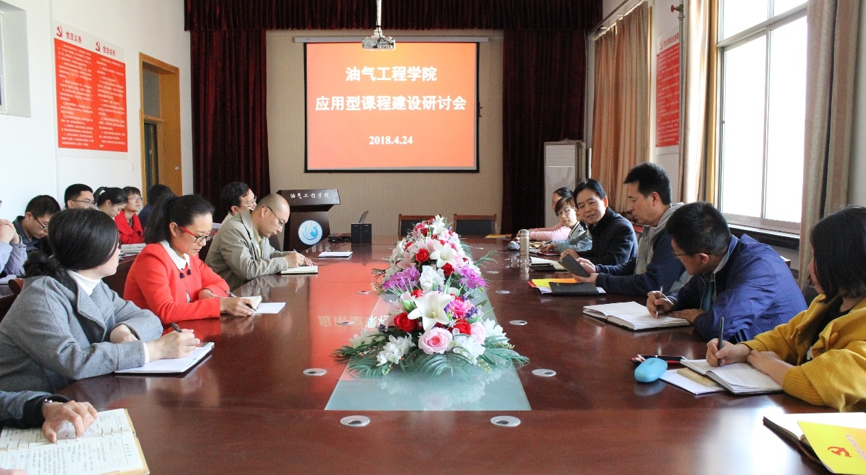 4月24日下午,油气工程学院在四楼会议室举行应用型课程建设研讨会。学院全体教师参加会议,油气工程学院院长梁敬升主持会议。会上,储运工程系主任刘坤以“翻转课堂&&蓝墨云班课学习交流”为题给大家做了汇报,分享了应用型课程建设的经验,同时对如何破解存在的问题提出了有益的建议。最后,梁院长对油气工程学院应用型课程建设工作进行了总结,他指出,应用型课程建设工作要突出实践应用能力培养,把“校企合作、协同育人”作为应用型课程建设的主要途径。