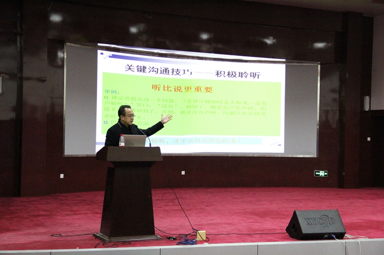 沟通力和表达力是一个人能力强弱的重要体现,为了提高学生干部们沟通与表达的能力,我院特邀请东营市演讲与口才协会会长宋宗周于3月17日在石大小音乐厅为学生干部们指点教学。