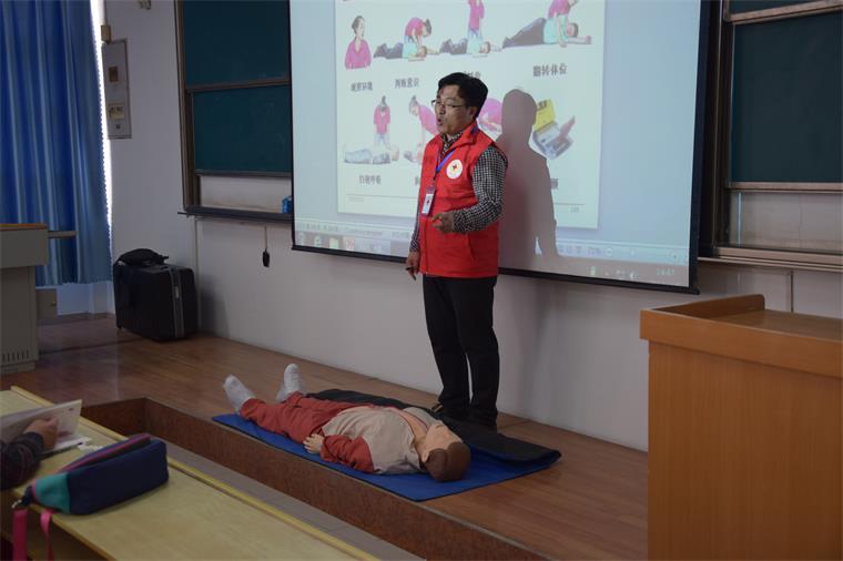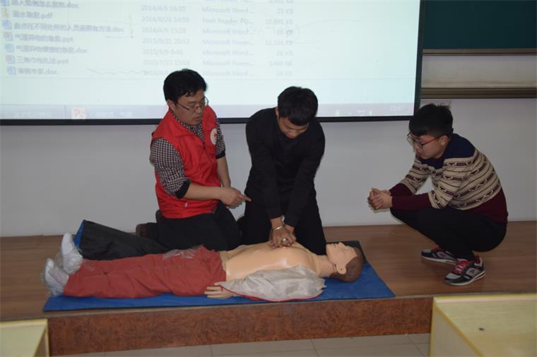 正式学习前,急救专家先给同学们讲了“红十字”的宗旨以及发生突发情况应注意的方面,然后又具体讲了心肺复苏和人工呼吸的步骤,并且亲自示范给同学们看,大家都很认真的听讲,并记录重要内容,因为大家都想在积极关头救护身边的人。为了让同学们更好的学会这门技能,老师又让同学们一个个轮流在假人身上操作并指出错误,同学们都虚心学习尽量把操作做到精准。毕竟在紧急情况下,医护人员很难快速赶来,而“白金十分钟”是救人的关键时期,所以对急救关键的掌握关系着危难者的生命。