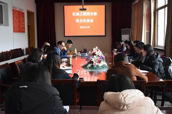 3月20日下午,石油工程党支部在西配楼4004会议室召开民主生活会,会议由支部书记时凤霞主持,支部全体党员参加了本次会议。