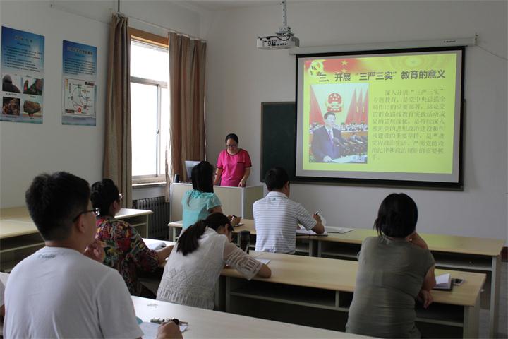党总支宣传委员辛艳萍宣读《油气工程学院“三严三实”专题教育实施方案》,对具体工作做出部署。我院的专题教育自6月中旬开始,面向全院党员。