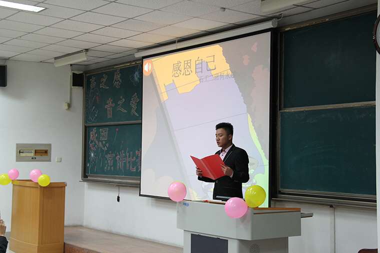 经过激烈的角逐,共有10位选手进入了决赛。赛前,女生部精心为每位选手录制了采访视频,使得同学们在比赛前便对每位选手有了大致了解。演讲过程中,掌声和欢呼声此起彼伏,同学们时而饱含热泪、时而陷入沉思,深受选手们的情绪感染。比赛间歇,女生部邀请到第四届感恩演讲比赛冠军黄渭文作为特邀嘉宾进行演讲,加以趣味的互动问答环节,将现场气氛带入高潮。最终,来自2015级油气储运工程专业的梁浩同学结合精美PPT,以“妈妈,我想对您说”为主题讲述了母亲无私绵长的爱,深深地打动着每位同学的心,荣获一等奖。曲政成、杨子钰同学获二等奖,其余选手分获三等奖及优秀奖。