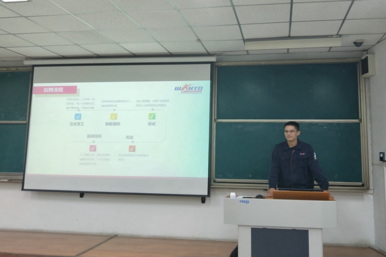 尚海涛首先感谢学校多年来对企业的支持,然后从企业用人全局介绍了公司的情况及人才需求情况,随后刘洪涛向大家介绍了万通石化集团的发展情况及企业岗位需求。