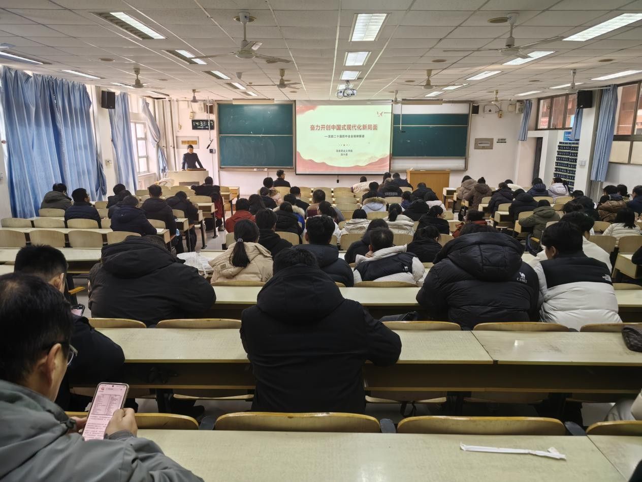 为深入学习宣传贯彻党的二十届四中全会精神,12月23日,yl9193永利集团在四教103教室,举办学习贯彻党的二十届四中全会精神宣讲报告会。报告会邀请学校宣讲团成员、马克思主义学院高小晨老师,以《奋力开创中国式现代化新局面》为题作专题宣讲,学院全体教职工及学生党员参加。
