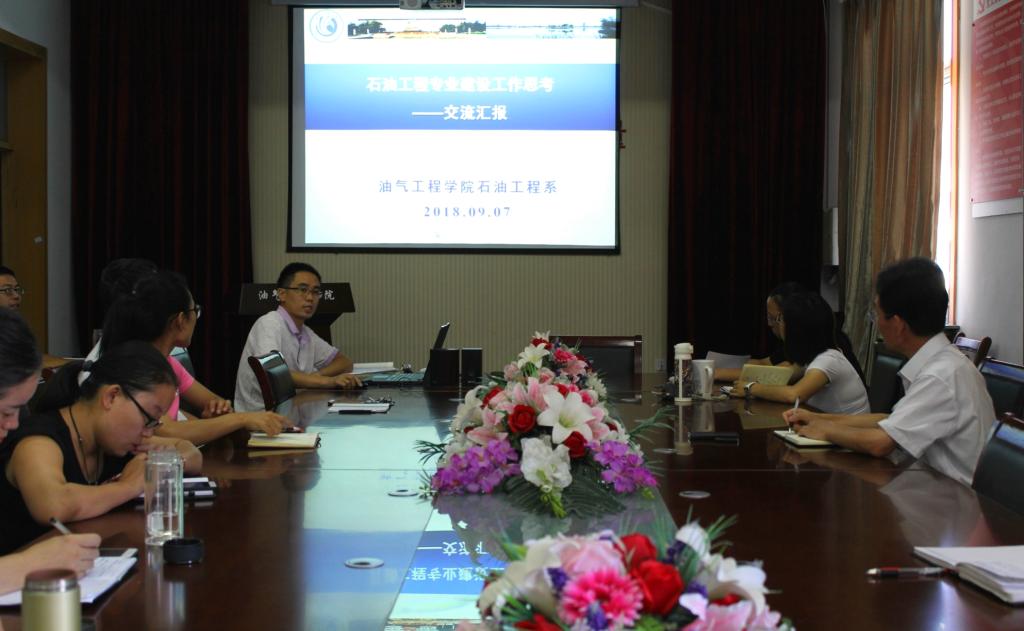 2018年9月7日上午8点,油气工程学院在会议室4004召开了暑期“提质量、上水平”专业建设研讨会。会议由执行院长梁敬升主持,代晓东副院长、辛艳萍副院长、各系室主任及全体教师参加了会议。