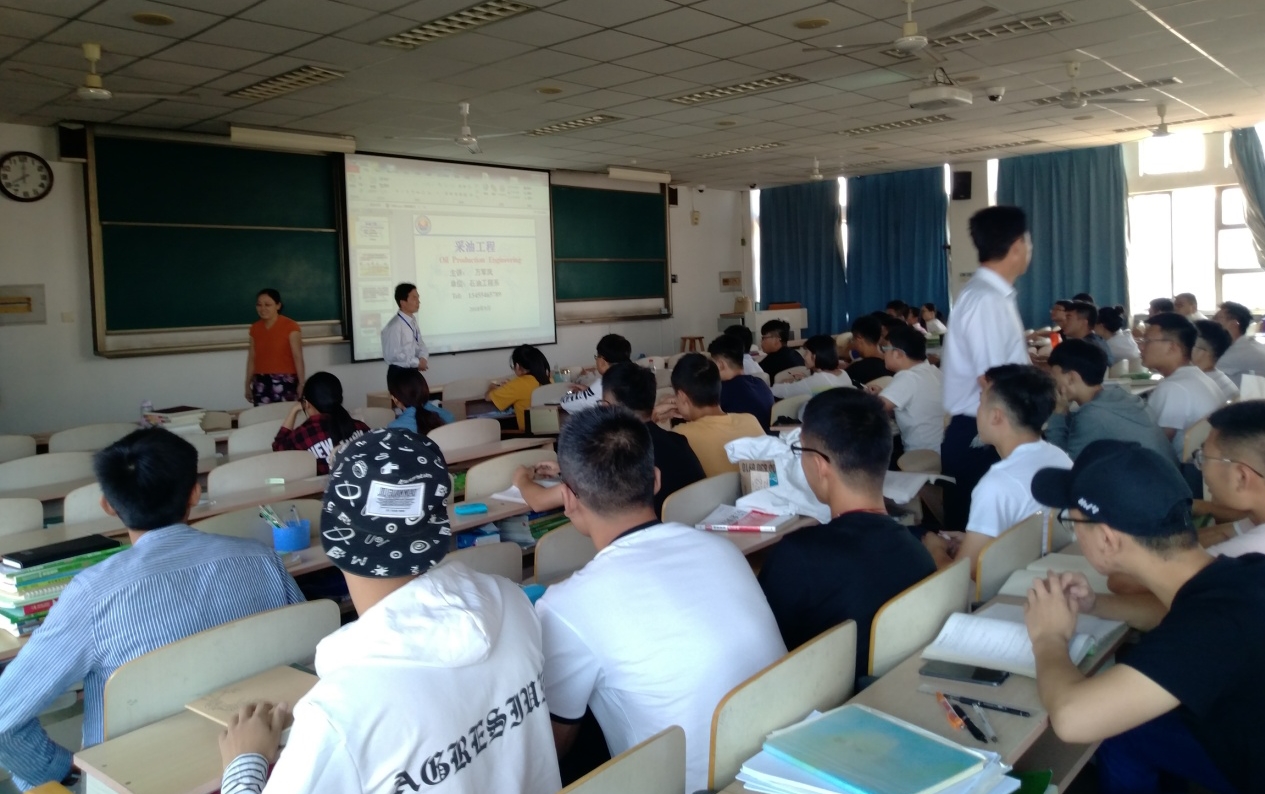 先后于4-4410教室检查了王艳丽老师的《岩石力学》课程、4-4309教室检查了孙元伟老师的《石油钻采机械》课程、4-4409教室检查了梁月老师的《工程热力学》课程、4-4511教室检查了万军凤老师的《采油工程》课程、3-3205教室检查了杨光辉老师的《油气储运专业制图》课程。