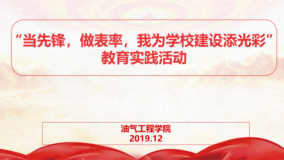 在我校学风建设的热潮下,在我校迎来关键发展之际,2019年12月15日,油气工程学院学生党支部联合团总支开展“当先锋,做表率,我为学校建设添光彩”教育实践活动。活动由油气工程学院党支部书记王成主持,学工办主任李聪聪、团总支书记伍佳慧出席,学生党支部全体、各年级各专业班干部参加本次活动。