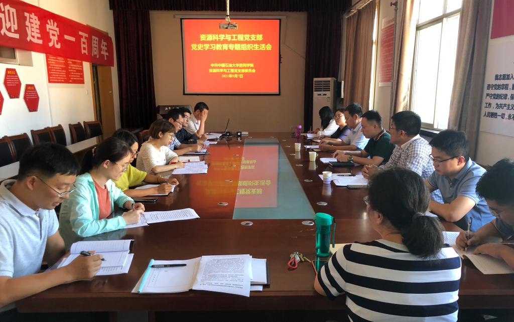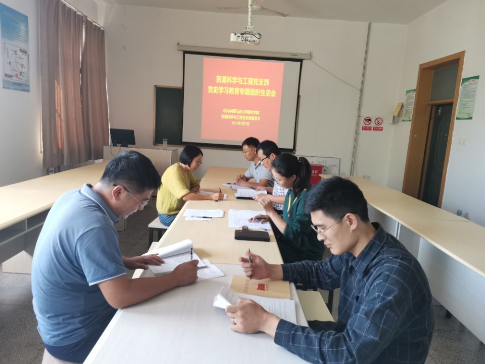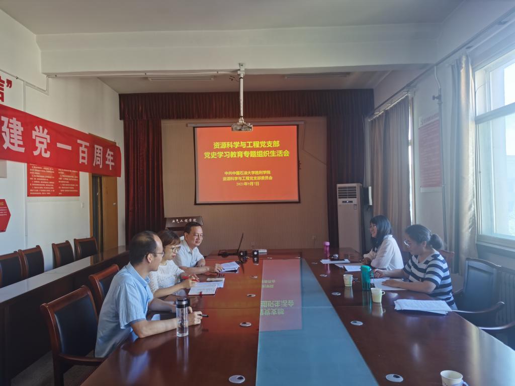 9月7日下午,资源科学与工程党支部在西配楼4004会议室组织召开党史学习教育专题组织生活会。会议由支部书记胡秋媛同志主持,市委党史学习教育第十巡回指导组成员,市法律援助中心副主任仲维厂主任、学校党员副书记孟昭亮、学校组织部副部长苏芳、油气工程学院党总支书记代晓东、油气工程学院党总支副书记李聪聪,及资源科学与工程党支部全体党员参加会议。