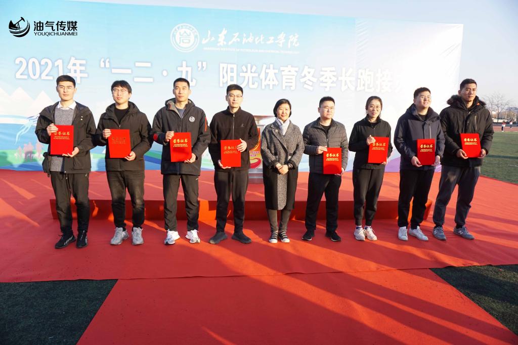 晴空万里,旌旗飘扬。为纪念“一二•九”爱国主义运动八十六周年,弘扬爱国精神和体育精神。我校于2021年12月4日下午两点在操场举行129阳光体育冬季长跑接力赛。本次参赛队伍为我校七个教学院的学生代表队和中国石油大学(华东)教育发展中心学生代表队。学校领导刘衍聪、孟昭亮、王晓勇及各职能部门负责人出席开幕式 ,学校领导王晓勇致开幕词。
