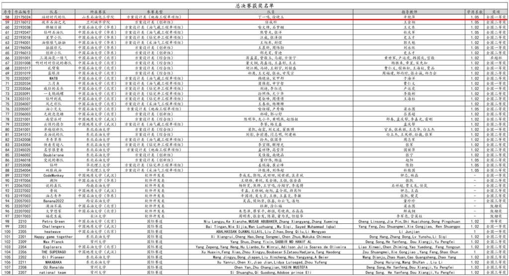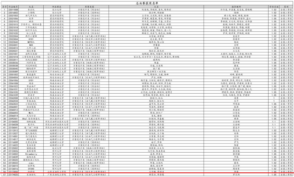2022年5月28日-29日,第十二届中国石油工程设计大赛总决赛在线举行。包括国际赛道,本届大赛共有48所高校及科研院所的2751支队伍报名参加,共提交有效作品1207份。经过与国内外各石油高校的博士、硕士研究生们同台竞技,我院储运工程专业学生丁一鸣、徐晓玉团队(指导教师:辛艳萍)获得地面工程单项组一等奖;石油工程专业学生王守鹏、李玥洁团队(指导教师:李雷)获得钻完井工程单项组二等奖。本届比赛是我院学子多年来首次冲进总决赛并取得一、二等奖的好成绩,这也显示了我院人才培养质量的显著提升。
