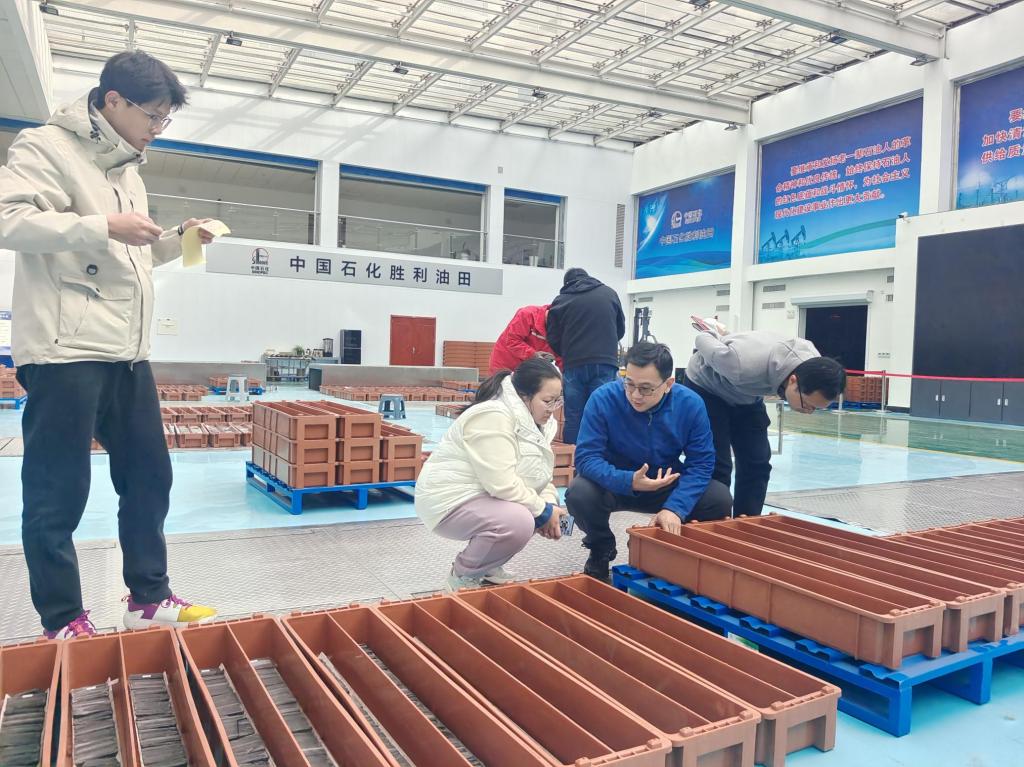 3月15日上午,yl9193永利集团王蛟教授、陈杰高工来到胜利油田岩心库,汇同勘探开发研究院西部柴达木盆地探区相关科研人员,开展了新钻井岩心观察与分析工作。
