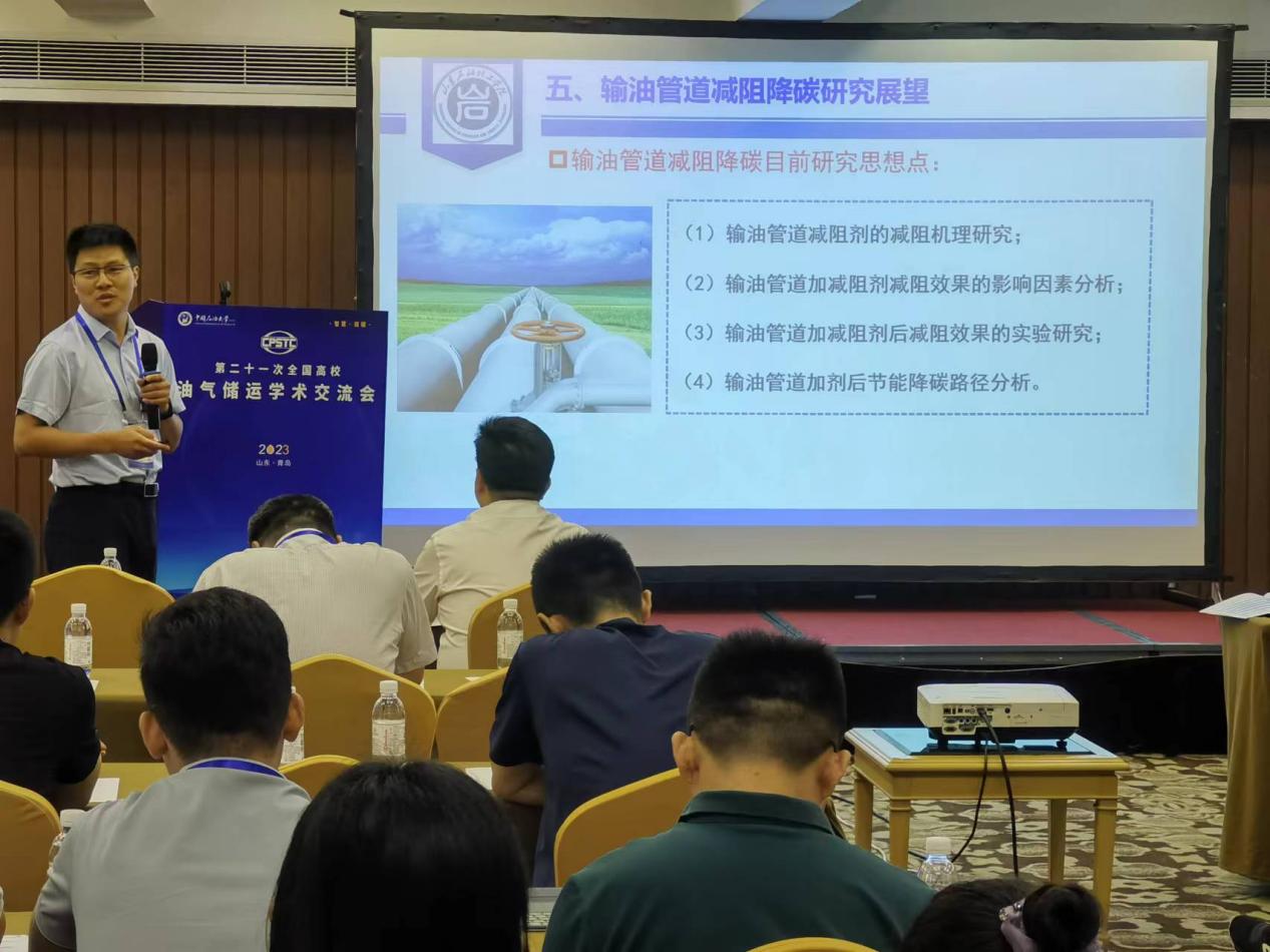 会议期间多位专家就“智慧”、“双碳”背景下油气储运工程专业内涵式发展进行了学术交流。代晓东教授作了题为《双碳背景下输油管道减阻剂应用中的节能降碳探索》的大会学术报告。详细介绍了我校油气储运工程专业建设、发展情况及团队在管道减阻领域的研究进展与成果。