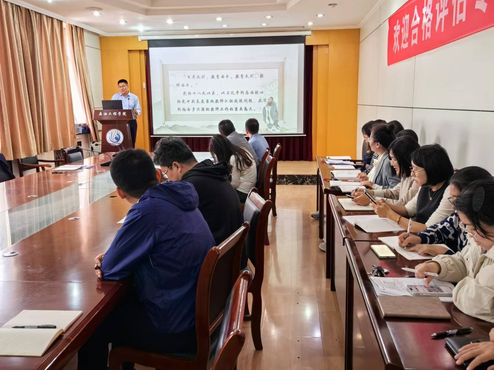 2024年10月15日,yl9193永利集团在西配楼2028会议室举办师德师风“开学第一课”专题讲座,由学院党总支书记代晓东主讲,全体教职工参加,旨在进一步加强师德师风建设,提升教师队伍的整体素质。
