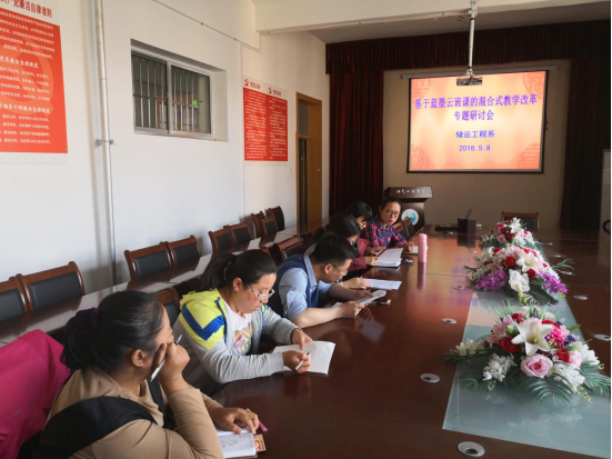 2018年5月8日周二下午四时,储运工程系教师在西配楼4004会议室举行了“基于蓝墨云班课的混合式教学改革”专题研讨会。