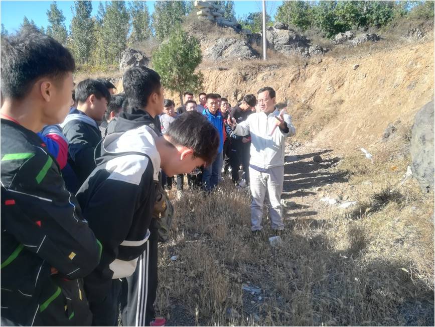 2018年10月27日至28日,在王延章、杨建磊等6位老师的带领下,资源科学与工程系2017级资源勘查工程专业共43名学生前往山东昌乐野外实习基地和山东莱芜野外实习基地进行了野外地质认识实习和考察。