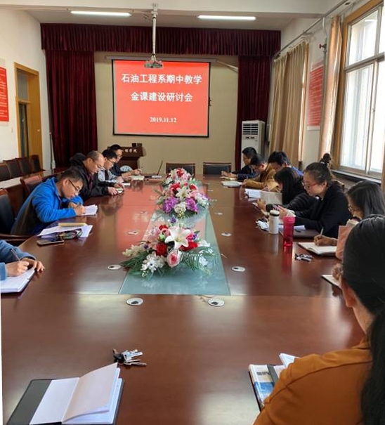 11月13日下午,石油工程系在西配楼4004会议室召开了2019-2020学年第1学期期中教学研讨会。会议由系主任王学武主持,油气工程学院执行院长代晓东以及石油工程系全体教师参加。
