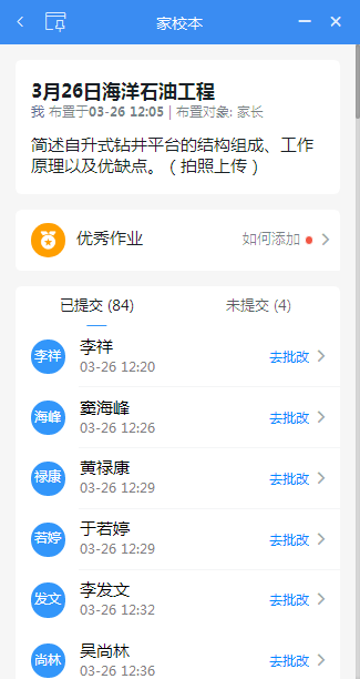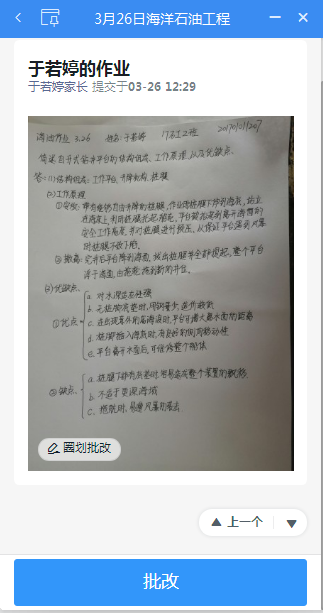 直播结束后,可在钉钉群内布置本节课的作业,规定好上交日期,让学生写完拍照上传即可。教师可在线进行作业批改,批改完成后,教师可选择给学生发送批改作业或发送批改成绩。
